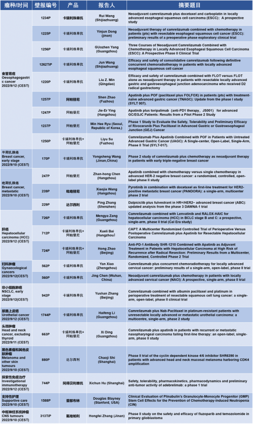 作为从事创新和高品质药物研发的国际化制药企业,永利娱乐城医药的研究成果在2022 ESMO大会上还收获了25项壁报形式的报告。其中,食管胃癌领域共有9项研究入选,研究的方案主要是卡瑞利珠单抗或卡瑞利珠单抗联合阿帕替尼,通过与化疗或放化疗联用,新辅助治疗食管鳞癌或胃癌。2022年9月12日(CEST),让我们齐聚ESMO大会,共同领略食管胃癌研究领域的学术盛宴。此外,永利娱乐城医药达尔西利、吡咯替尼、阿得贝利单抗等创新药还有4项乳腺癌研究、3项肝癌研究及其他领域的9项研究都将会以壁报展出,让我们共同期待!